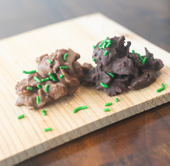 Frosted Flakes cereal folded into smooth mint chocolate (milk or dark), for a cool, crispy twist on your favorite after-dinner treat.